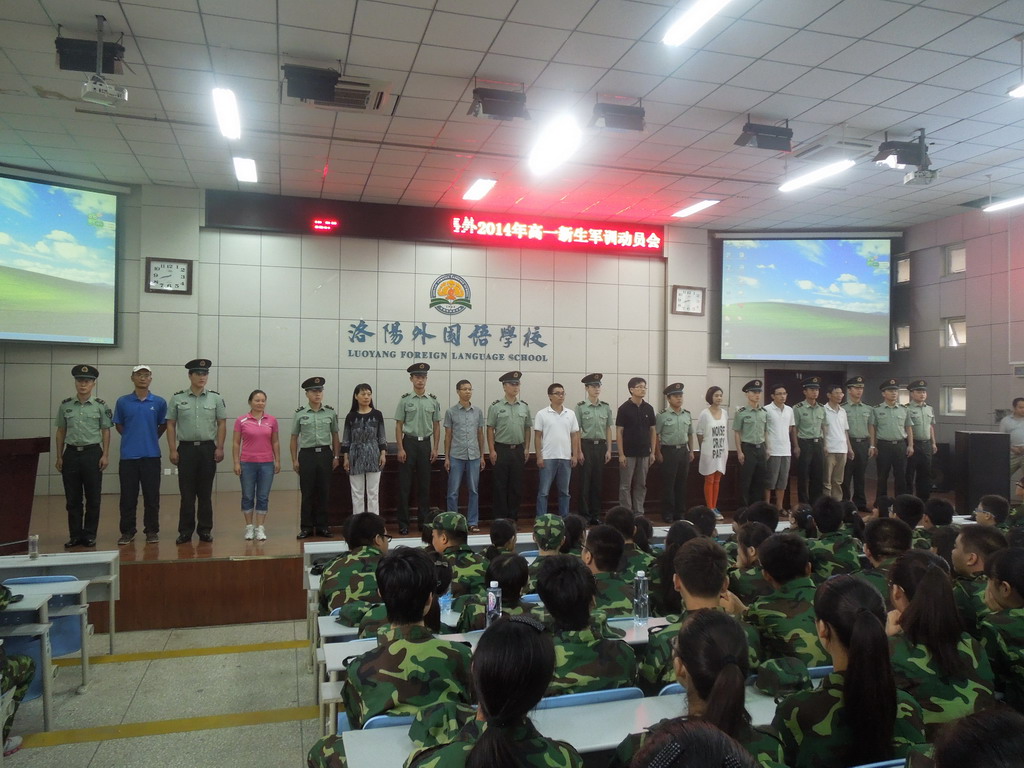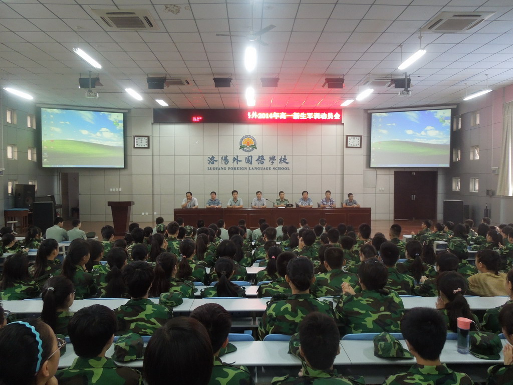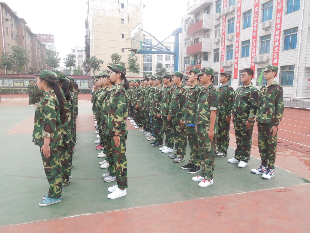 我校高一新生军训工作今天正式开始。上午8:00,在学校科技综合楼举行了隆重的军训动员大会,校长段华松同志致词,同学们统一着迷彩军训服,精神饱满,气势高昂,展现了洛外学子良好的精神风貌。相信今年的军训工作,在学校的精心组织下,在参训教官的指导下,在全体高一师生的努力拼搏下,一定会取得圆满成功!军训第一天,看看我们的风采吧!