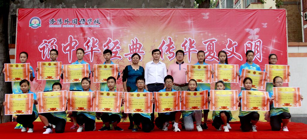 大赛在庄严的国歌声中拉开了帷幕。比赛以诵读为主,形式新颖,花样不断。有古筝伴奏,歌舞表演,情景剧释义,汉服展示等多种形式。现场学生精神饱满,热情洋溢。比赛结束后,段校长对比赛进行总结讲话,钟校长宣布比赛结果,段校长为获奖班级颁奖并合影。