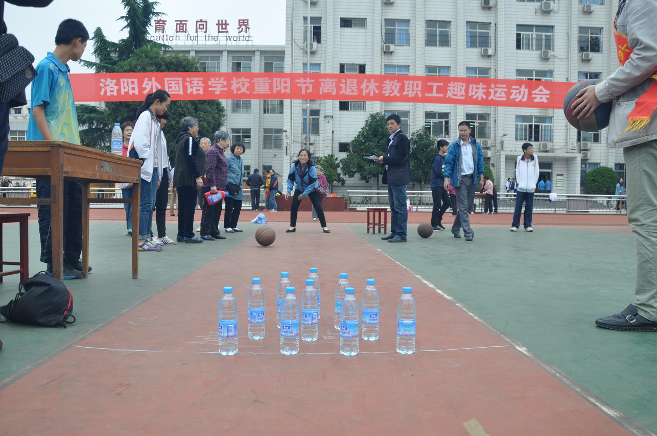 为迎接重阳节,倡导科学、健康、文明的生活方式,丰富离退休教职工的文体生活,促进离退休教职工身心健康,展示洛阳外国语学校离退休教职工的风采,学校于9月30下午3点举行了教职工趣味运动会及书画作品展,大家踊跃参加比赛,现场活跃,尽情开怀。