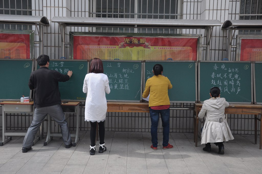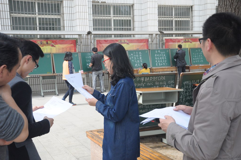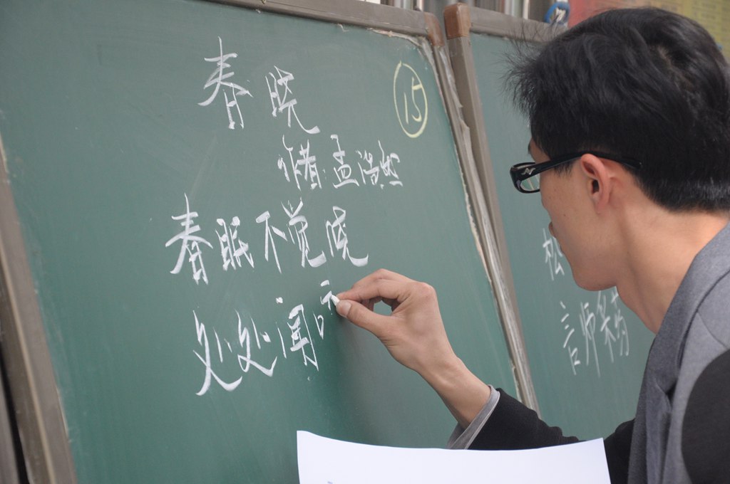 为增强全体教师写好粉笔字的意识,提高板书规范化水平和板书设计水平,提升教师综合素养。4月22日下午,来自两个校区六个年级组选派的十八名教师,在西校区教学楼前举行粉笔板书大赛。比赛现场气氛热烈,场地内18块黑板一字排开,场上参赛老师静气提神认真书写,场外观看的师生人头攒动不时发出赞叹。最终比赛评出一等奖1名,二等奖2名,三等奖3名,“最靓粉笔字团队”一个。