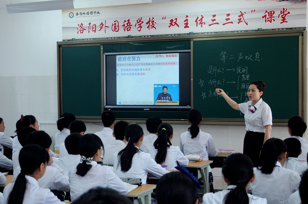 5月17日上午,《洛阳晚报 教育周刊》智慧课堂巡礼至洛阳外国语学校。市教育局教研室主任及教研室中心组成员、教育专家、许昌市教育专家以及漏油晚报教育周刊的相关领导齐聚洛阳外国语学校,观摩了“双主体三三式”课堂教学模式,并对观摩课进行了点评和研讨。