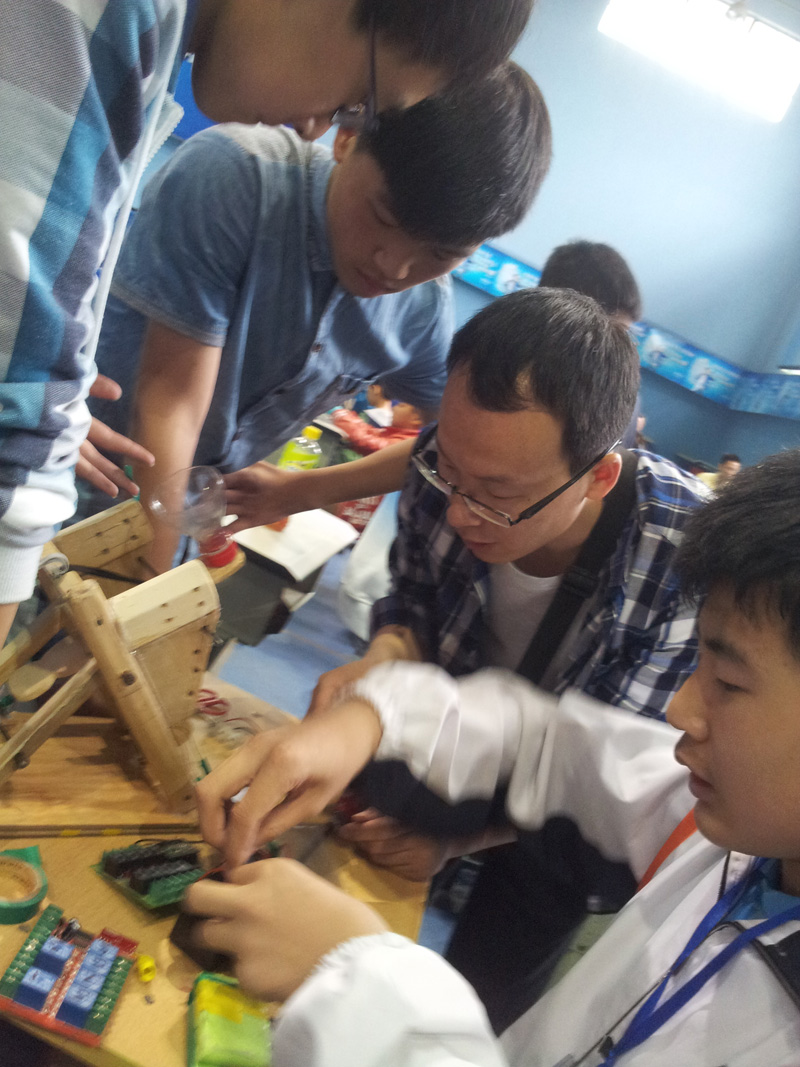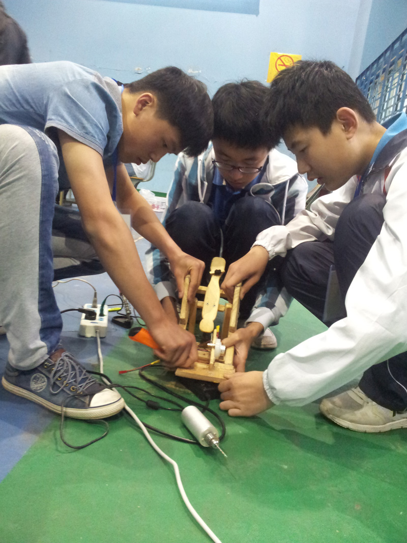 为了充分备战此次比赛,我校共挑选出8名优秀学生参赛,他们分别是初一(10)班买楚源、初二(1)班张奥翔、初二(5)班贠佳琦、贠佳颖、刘英翔、初二(6)班李可昕、初二(8)班王凯辛和初二(12)班张雄志。段华松校长和胡伟民副校长给予此次比赛大力支持,韩宏民、寇志红、于瑞莹、任亚辉、苑新国、焦小菲等六位老师携手努力,牺牲休息时间和学生们在一起研究和不断改进机器人。我校师生充分发扬团结合作、精益求精的精神,在多次的失败中总结经验教训,一步一个脚印踏实前进,最终我们带着制作精良的机器人走向了赛场。