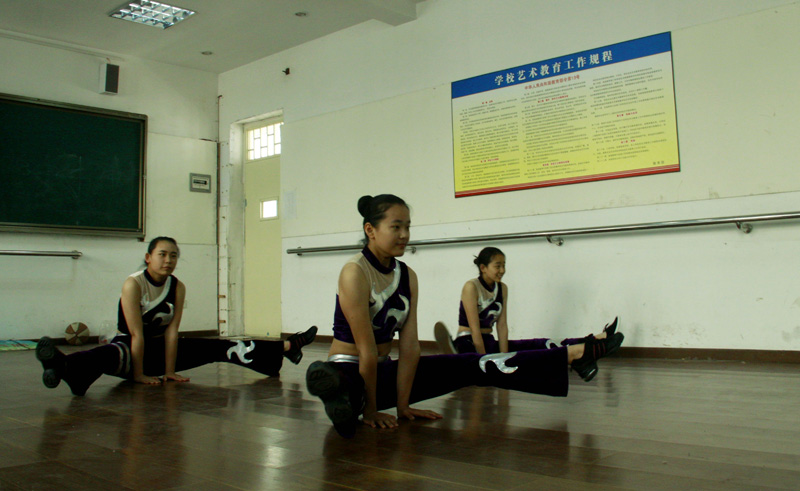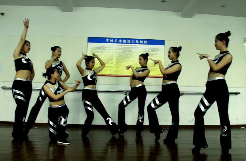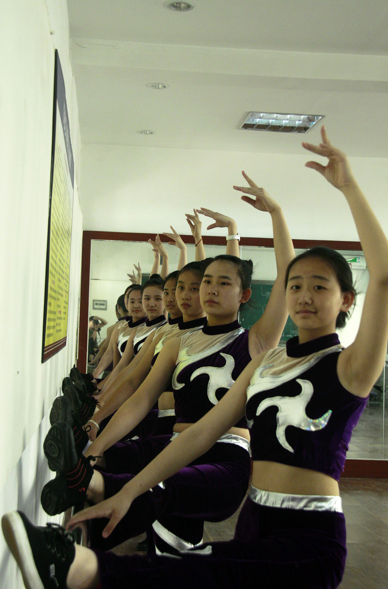 在洛外舞蹈社团的练功房内,同学们刻苦努力着