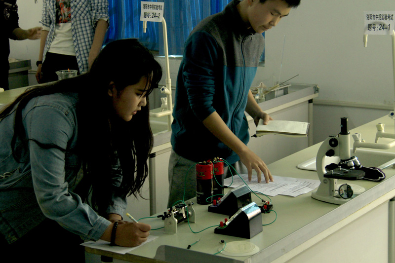 我们的教师特别敬业。他们精心组织学生备考,一遍遍辅导学生,牺牲了周六和周日的休息时间,每晚实验教室明亮的灯光照耀着他们不知疲倦的身影。正是教师们无私的奉献,辛勤的努力,鼓舞了学生士气,学生才真正沉下心来,认真做好每一个实验。