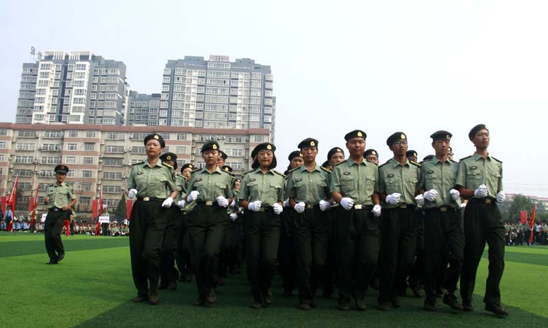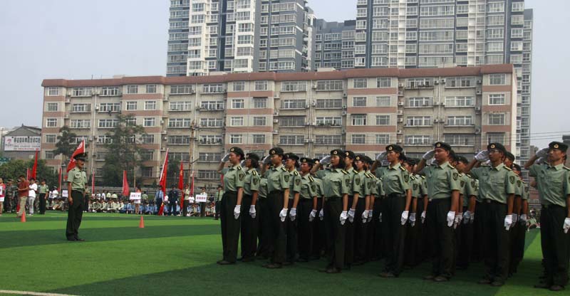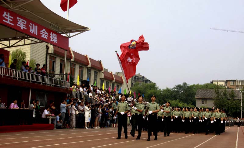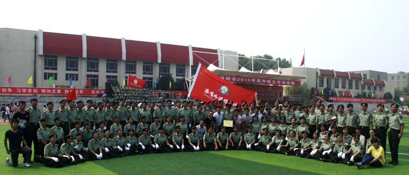 嘹亮的口号是严酷军训迸发的集体力量;坚定的目光是军训熔炉锤炼的灼热印记。2015829日上午,在洛阳市第一中学的操场上,洛阳外国语学校2015级新生军事训练会操方阵和全市各学校代表队上演了一出青春与刚强的碰撞展演,并接受了教育局以及军官的检阅。本次会操评比从队列纪律、精神面貌、军容风纪、动作规范等方面严格打分。每个学校的方阵依次入场,汇报展示了跑步入场、立正、蹲下、跨立、立定转向、齐步走、跑步等训练科目。洛阳外国语学校的会操队员,口号响亮、精神抖擞,动作有力,充满朝气,他们的精彩表现赢得了评委和领导的一致称赞。最后,我校获得了2015年洛阳市高中军事训练会操的一等奖!