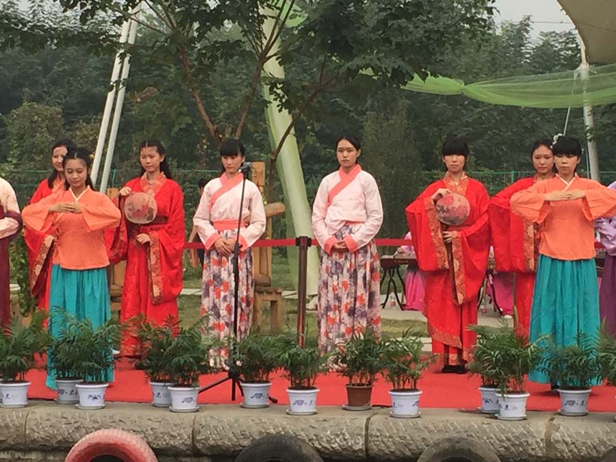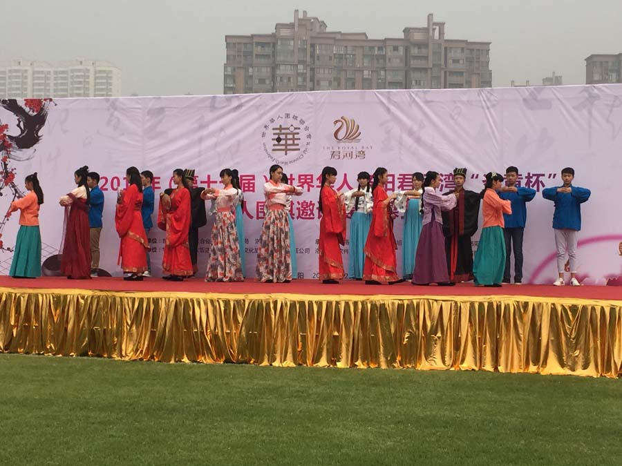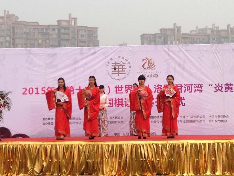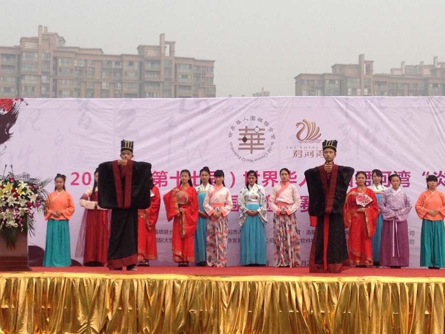 2015920日上午,第十七届世界华人洛阳君河湾“炎黄杯”名人围棋邀请赛在新区体育中心足球练习场举行了隆重的开幕式。在开幕式上,洛阳外国语学校的路红、张燕敏、郭艳和密婕等四位老师带领热爱中国传统文化的高中生为大家带来了汉服表演,让现场观众形象感受了中国传统文化的“大纯至贞,大美如仪”。