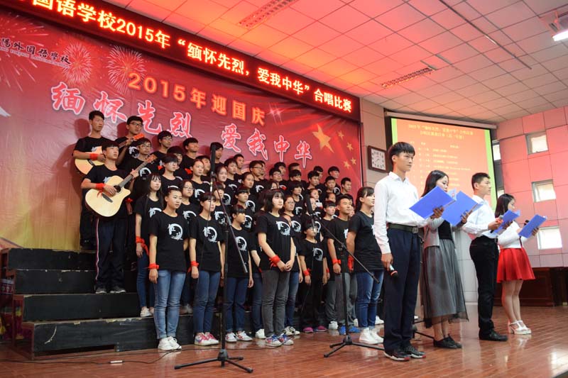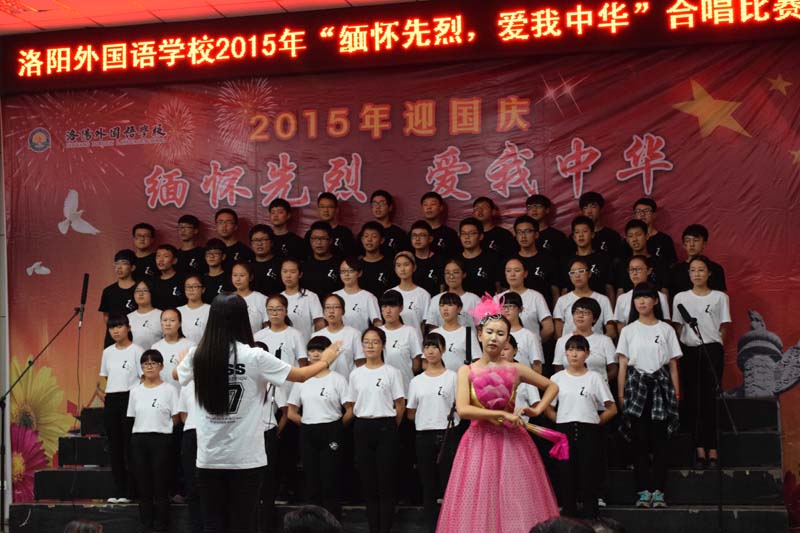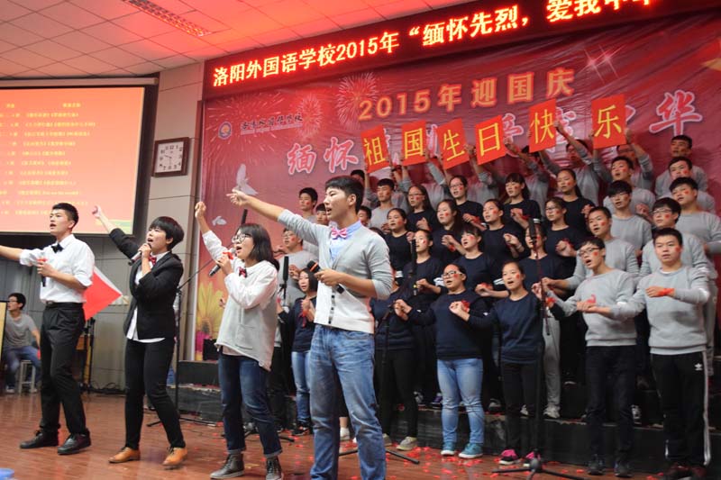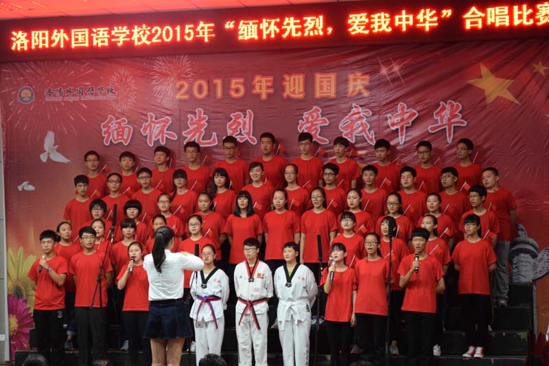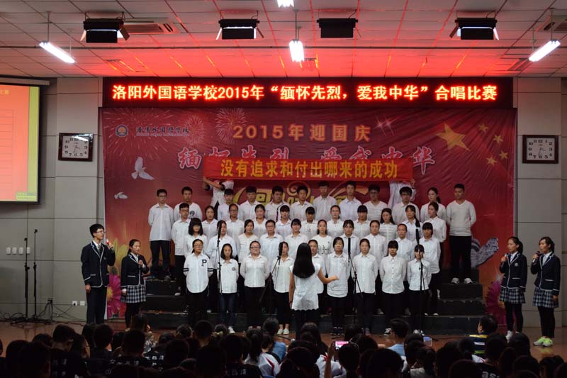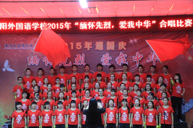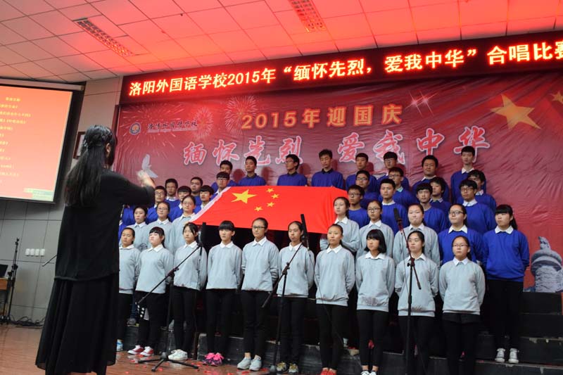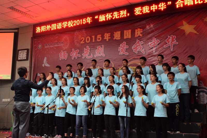 为庆祝即将到来的第66个国庆节、培养学生爱国热情与集体荣誉感,2015年9月29日上午,洛阳外国语学校西校区团委和政教处联合举行了“2015年迎国庆‘缅怀先烈 爱我中华’合唱比赛”。同学们用优美的歌声、高涨的热情追忆了革命先烈的卓越贡献,赞美我们伟大祖国66年来取得的伟大成就。整场演出气氛热烈,高潮迭起。
