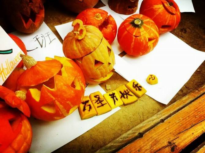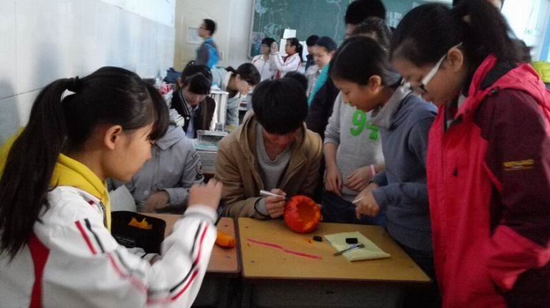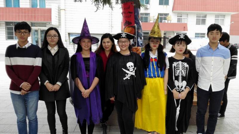 洛阳外国语学校具有鲜明的外语特色,为了让同学们了解并体验西方文化,于2015年10月30举办了第三届狂欢万圣节!由国际部和外语组组办,全体高一、高二年级同学参加。同学们制作精美海报(poster),营造节日氛围;分班播放万圣节视频,让同学们了解万圣节的起源与习俗;分组制作万圣节的象征物——南瓜灯,亲自体验西方节日。与此同时,中加班的同学们则隆重装扮成女巫(witch)、恶鬼(gost)到各班进行“Trick or Treat”(不给糖就捣乱)的互动活动。中加班的同学们准备了趣味英语问题的卡片,如果同学们答对了,就会有糖吃,如果答错了则会受到惩罚,如被喷雪。他们还准备了小游戏,同学们的积极参与与,笑声一片,把狂欢推向了高潮。