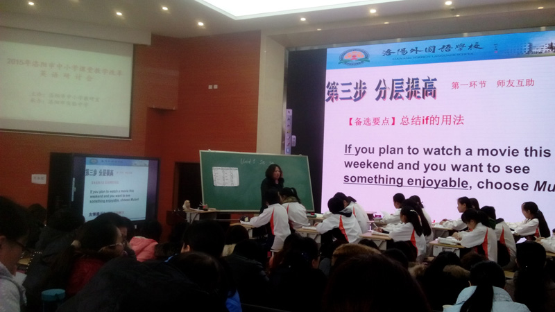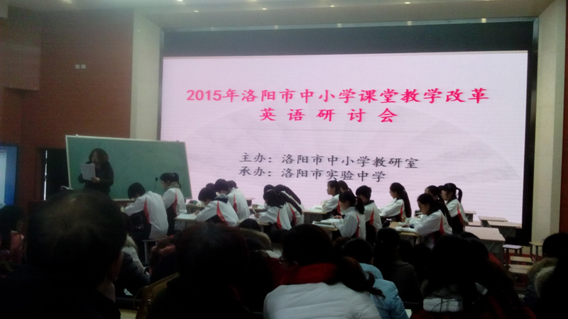 20151125日,刘海利老师代表我校英语教师,在新区洛阳市实验中学举行的洛阳市初中英语课堂教学模式研讨会上,展示了我校英语课堂教学改革的成果。