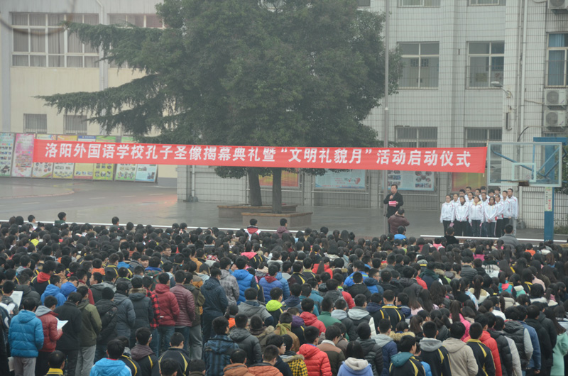 洛阳外国语学校隆重举行孔子圣像揭幕典礼暨“文明礼貌月”