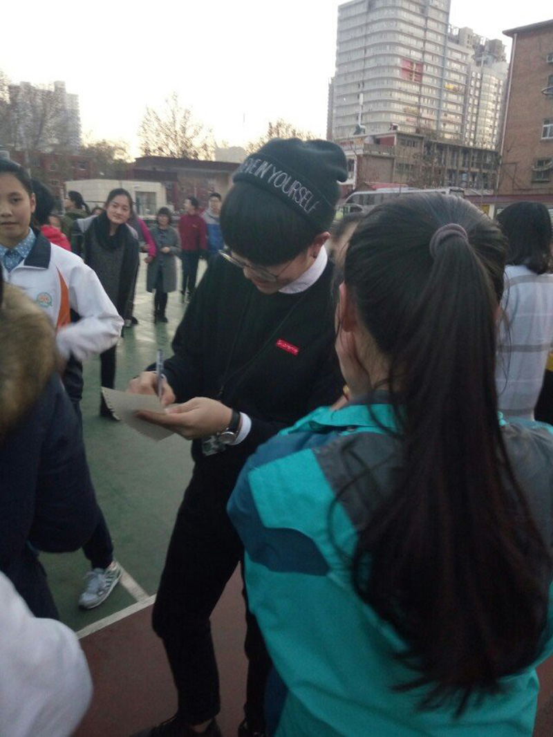 简单的欢迎仪式之后,韩国师生在洛外热爱韩语志愿者的带领下,参观了校园。他们边走边聊,了解彼此的学习生活,互教授各自的母语,有些同学甚至惊奇地发现原来他们和韩国同学有着共同的偶像!中国中学生一直以为自己的高中生活压力大,通过了解他们明白原来韩国也是高考大国,韩国的孩子也需要为自己的未来去打拼。