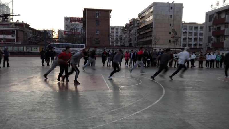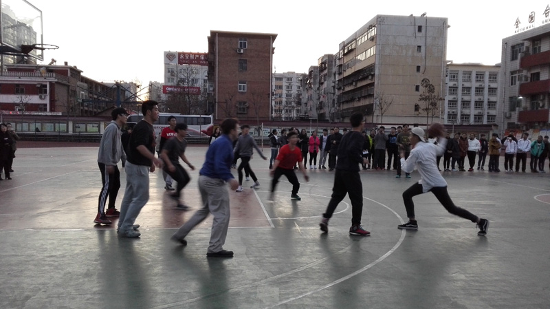 随后,韩国交流生来到操场,与洛外篮球社团的同学们进行了一场别开生面的友谊赛。篮球场周围站满了热情的中韩双方学生,不时发出一阵阵加油助威声,篮球健儿们运步如飞,使比赛激烈而又和谐,不知不觉中精彩的40分钟过去了,比赛也完美落幕。两校同学既切磋了球技,也建立了深厚的友谊,为本次交流活动锦上添花。