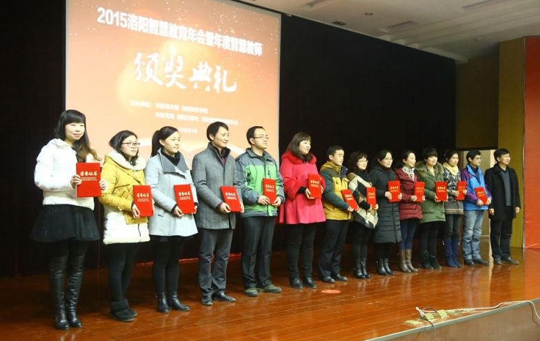 我校获2015年智慧教育示范学校称号,以实际行动助推洛阳智慧教育大发展 2016年元月16日上午,2015洛阳智慧教育年会暨年度智慧教师颁奖典礼在洛阳报业集团会议室隆重召开。洛阳外国语学校荣获2015智慧教育示范学校荣誉称号,我校“双主体三三式有效课堂”荣获洛阳智慧课堂称号,王定国副校长当选“2015洛阳十佳智慧教师”,颛宏娟老师被评为“2015智慧教师”。 依智慧力量,启智慧教育。学校智慧教育需智慧校长的理念引领。段华松校长和学校领导积极推进智慧教育,把智慧课堂教学模式大力在学校推广并取得了良好成效。在智慧校长的理念引领下,我校的智慧教师也在积极探索实践,专注课堂改革,倾心教书育人,王定国老师和颛宏娟老师在智慧课堂走进我校时,把智慧课堂教学模式展现得淋漓尽致,得到听课教师的一致好评,获得“2015洛阳智慧教师”称号。 2016年,洛阳外国语学校依然以智慧引领教学,教师以智慧设计教学,以实际行动助推洛阳智慧教育的大发展。