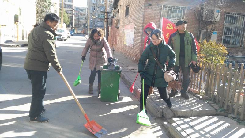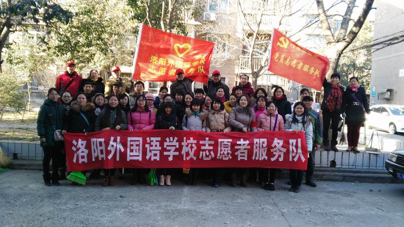 洛阳外国语学校广大党员教师认真践行社会主义核心价值观,弘扬社会正能量,积极参与我市和我校的精神文明建设活动,以实际行动彰显洛外人的文明风范。2016年1月25日,我校志愿者服务队的广大成员在胡伟民副校长的带领下,冒低温顶寒风到行署路8号院参加义务劳动,我校的志愿者们不怕脏不怕累,积极铲除各种小广告、清理小区内的陈年垃圾。刺骨的寒风穿透了他们的身体、冻僵了他们的双手,大家依然精神饱满,干劲十足,受到了社会居民的一致好评。让我们向积极参加此次志愿者服务活动的以下各位老师表示感谢:胡伟民、吴进洲、王秋堂、谢亚红、姬翔、宋红霞、姚维华、党琪、李雪云、张奇、邹东霞、张宇、孟紫千、刘海利、韩士霞、毛梦阁、焦晓菲、杨逢春、孙旭辉、谢利卿、梁志鹏、王运红、张红梅、贾红芹、赵玉同、王军霞、孙景芳、张莉、聂晓青、徐辉、郜珊珊、邱 源、方心、张正军、郭洁琼、王雪锦、祁婧、李娟。