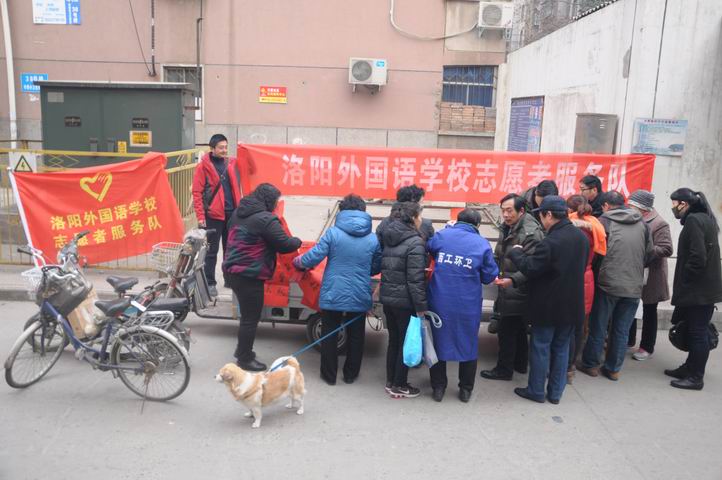 | 洛阳外国语学校志愿者服务队开展“情系社区,送福送春“义写春联送祝福活动 |