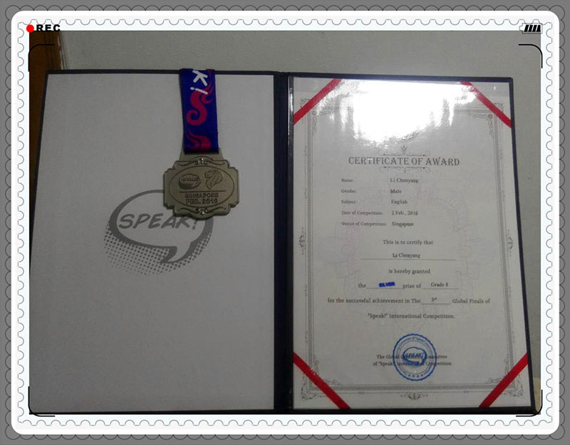 新年伊始,洛阳外国语学校初二、13班的李晨阳同学在201624日落下帷幕的“第三届China Speaks!国际英语大赛全球总决赛”中荣获银奖载誉归来,充分展现了我校中学生的英语素养和演讲风采。China Speaks!国际英语大赛是由国际英语联合会(ESU)、中国国际青少年素质教育发展中心(CICY)、国际互联网少儿电视台(ICTV)联合主办,英国大使馆文化教育处(BC)技术支持的国际顶级英语竞赛。国际英语联合会(ESU)成立于1918年,拥有百年历史,其赛事在全球有56个国家参与,其颁发的奖项被誉为英语界的“奥斯卡”。