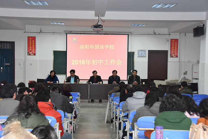 为表彰洛阳外国语学校2015届初三教师在教育教学工作中取得的突出成绩,明确新一年的奋斗目标,鼓足干劲,力争在2016年的中招考试中再创佳绩,229日下午我校初中工作会议在东校区阶梯教室召开,全体初中部教师参加。2015年我校中招考试取得了辉煌的成绩,陈晓珂同学以全国第30名的优异成绩被西安交通大学少年班录取,达到省级示范性高中分数线244人,普高上线率97%各科平均分均进入全市前十名,同时也为我校高中输送了一大批优秀学生。连续五年获得了洛阳市初中教育教学工作目标管理先进学校、洛阳市优秀生源基地。