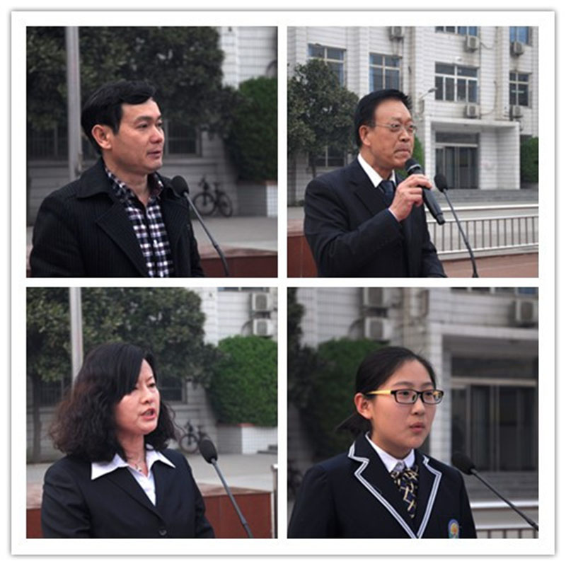 初三年级组长郭长庆老师发表题为《勤奋攀登向前冲,无限风光在险峰》的讲话,对初三学子提出了严格的要求,也寄予了深切的厚望:学练并举,成竹在胸,敢问逐鹿中原群雄今何在?师生同战,协力攻关,笑看魁首外语学校首先得!教师代表张伟红老师告诫学生只有忍受别人不能忍受的痛苦,才能走在竞争者的前列。“所谓不能忍受的痛苦”,就是不要让网络游戏手机占据你的梦境;不要让零食吞食了你的生活。希望他们作能勇斗风雨的海燕,能博击长空的雄鹰,相信2016年中考,一定会成为一道道亮丽的风景!