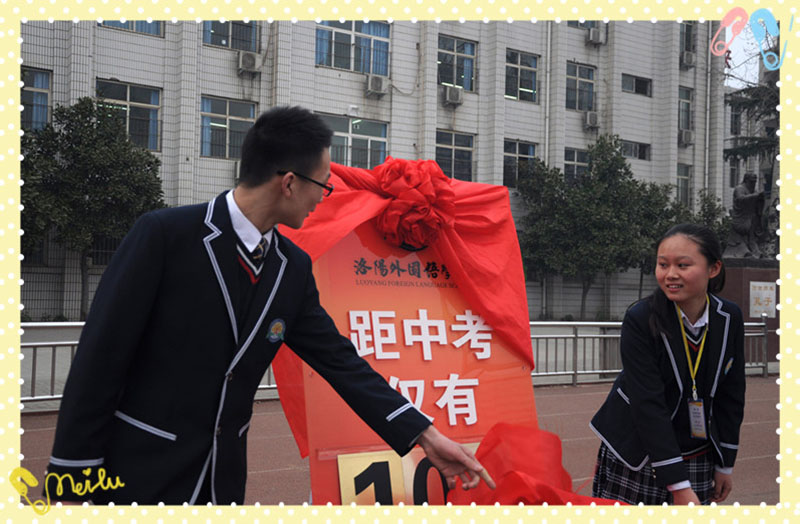宣誓之后段华松校长委托两位同学郑重揭开一百天的倒计时牌,百日倒计,分秒必争!16个班960名学子最后集体宣誓,百日倒计,定创洛外新辉煌。百日誓师大会在铿锵豪迈声中圆满结束。