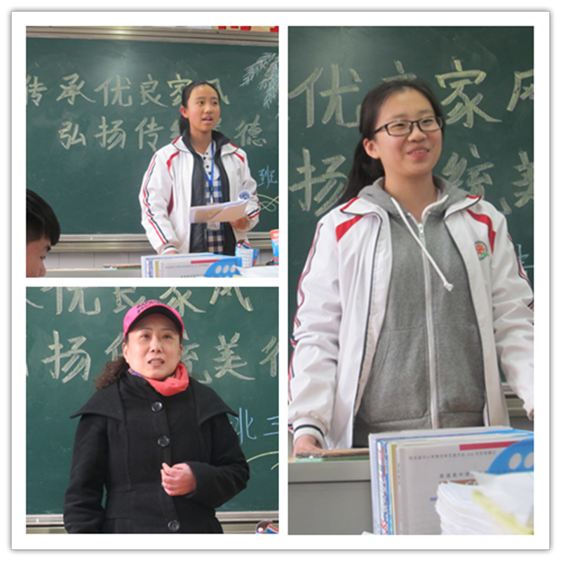 2016年3月14日下午,洛阳外国语学校高一(3)班召开了“传承优良家风,弘扬传统美德”主题班会。班主任白红旭老师特意邀请到了王禹森同学的母亲参加,她循循善诱,加深了同学们对家风的认识。