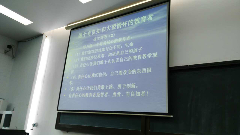 2016 年3月18日下午,洛阳外国语学校高一高二全体教师在阶梯教室参加课改培训会。学校邀请了课改专家——确山二中牛海山校长做课改报告。段华松校长、项伟副校长、王定国副校长参加培训会。