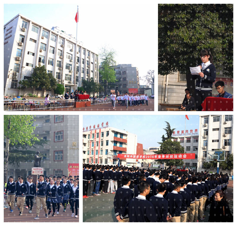 四月的洛外草长莺飞、春色满园。沐浴着柔和的朝阳,享受着清爽的晨风,洋溢着自信的微笑,挥洒着阳光的气息,洛阳外国语学校春季田径运动会在 2016331日早上八点拉开了序幕。在开幕式上,伴随着激昂的运动员进行曲,各班级整齐划一的,喊着本班级的口号依次有序的入场。全校高一高二年级的21个班级逐一亮相,集中展示了洛阳外国语学校“敢于拼搏,积极向上”的精神风貌。