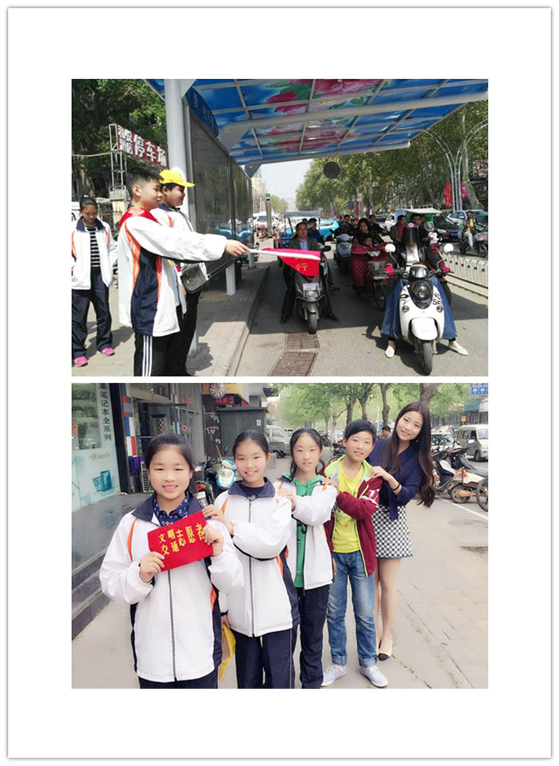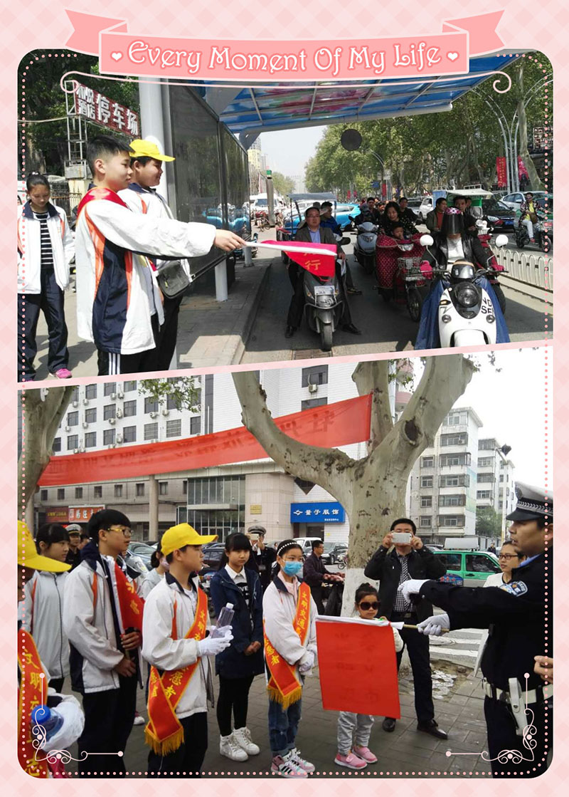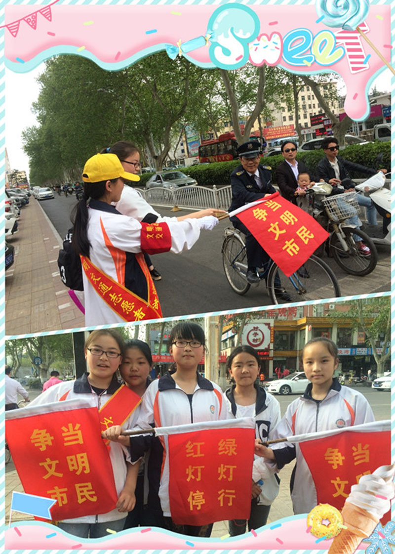 在志愿服务活动期间,我校的小志愿者们准时在确定地点集合。大家认真听取交警支队魏英杰中队长的岗前培训教育后,以饱满的热情开始了服务活动。在温暖和煦的春风里,小志愿者佩戴执勤所需要的小红帽、手拿引导旗,满面笑容的为我市市民和外地游客引导交通。执勤的志愿者们认真负责、轮流上岗,在绿灯亮了之后,及时放下自己手中的红旗,指引行人以及骑自行车或电动车的人们安全走过十字路口,严禁出现闯红灯的情况,保障了交通秩序的稳定。同时大家还积极为外地市民指路,帮助他们尽快到达目的地。